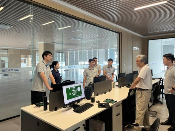 挂牌仪式后,校方一行实地考察了中大力德公司智能仓储、机器人装配测试车间和产教融合实训基地。副院长孟遂民、朱亚峰与工程师探讨智能装备技术瓶颈及应用场景,并走访了正在岗位工作的我校25届毕业生机器人班的张驰等同学,倾听他们在工作中的体会和收获,征求他们对学校人才培养方案课程设置的建议。