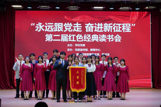 11月8日晚,我校在一号学术报告大厅举办“永远跟党走 奋进新征程”红色经典读书会朗诵比赛,我院师生朗诵作品《以站立的姿态和祖国在一起》在比赛中荣获三等奖。