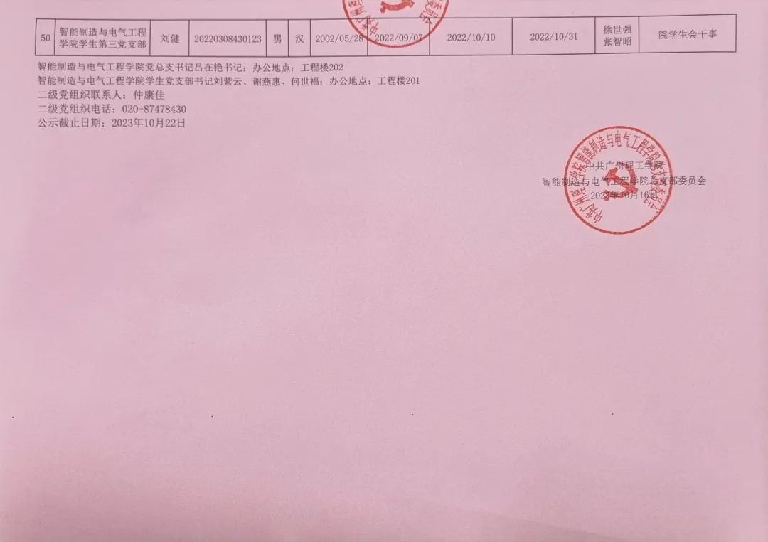 在听取培养联系人、党员和群众意见的基础上,经支部大会、支委会研究决定,拟确定梁剑华等50名同志为发展对象,具体情况公示如下。有异议者,请自本公示之日起,通过电话、电子邮件或书面形式,向党支部或党总支办公室反映发展对象在理想信念、政治立场、思想作风、工作表现、群众观念、廉洁自律等方面的情况和问题,反映情况要实事求是并署真实姓名。党支部和党总支将对反映问题严格保密,对反映问题进行调查核实,弄清事实真相,并以适当方式向反映人反馈。