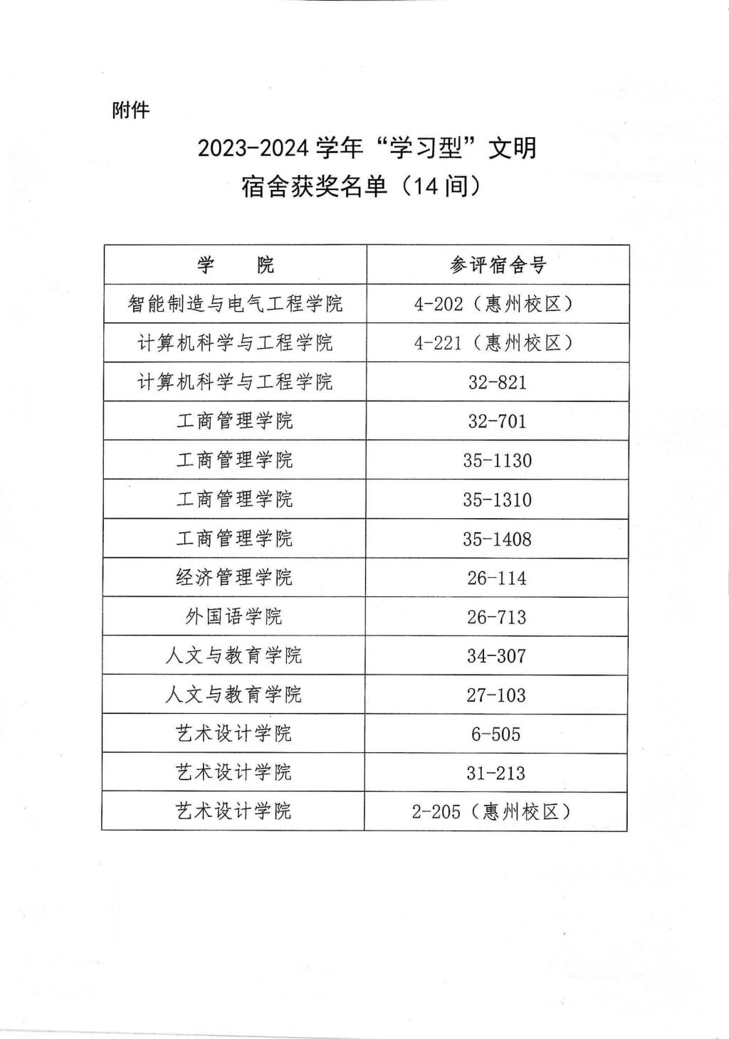 关于公布2023-2024学年“学习型”文明宿舍获奖名单的通知