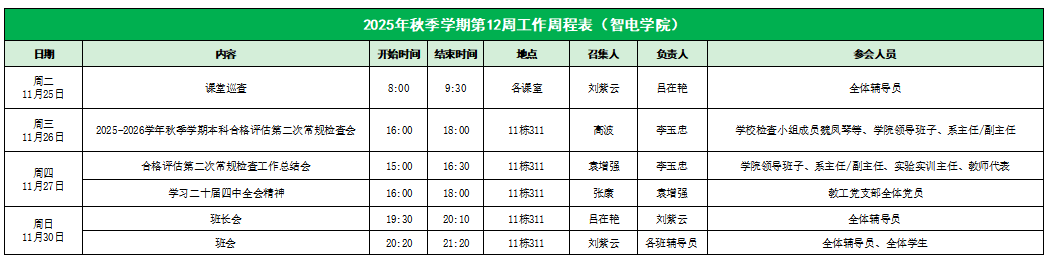 智电学院2025年秋季学期第12周工作周程表