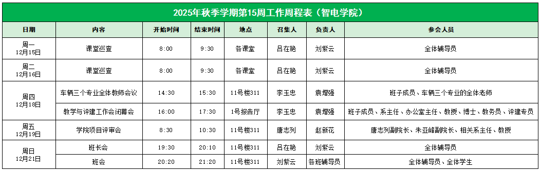 智电学院2025年秋季学期第15周工作周程表