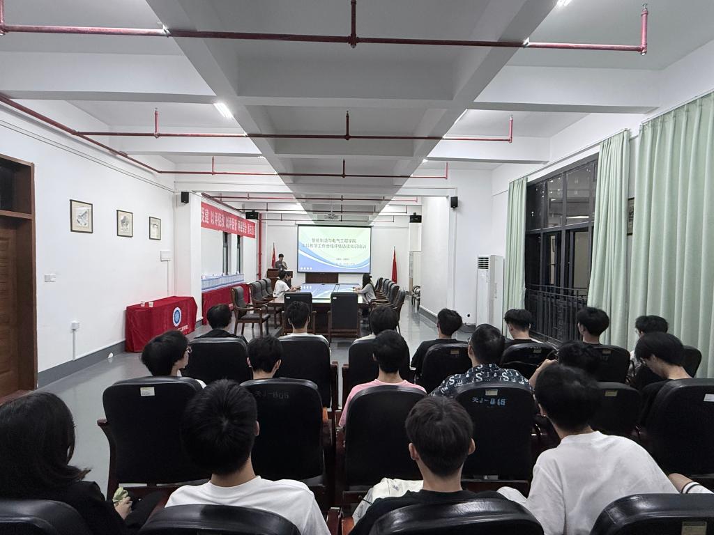 11月9日晚,智电学院在工程楼311会议室组织了一场本科教学工作合格评估访谈模拟演练,旨在助力同学们以最佳状态迎接评估,展现学院良好风貌。学院党总支副书记刘紫云、辅导员肖静园、张康、何玉华、吴浩、王艳飞以及随机抽取的22级、23级、24级共28名同学参与此次活动,辅导员王艳飞老师担任主讲。